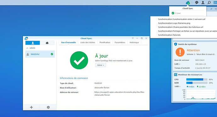 - Votre Synology est désormais synchronisé avec votre compte Nextcloud